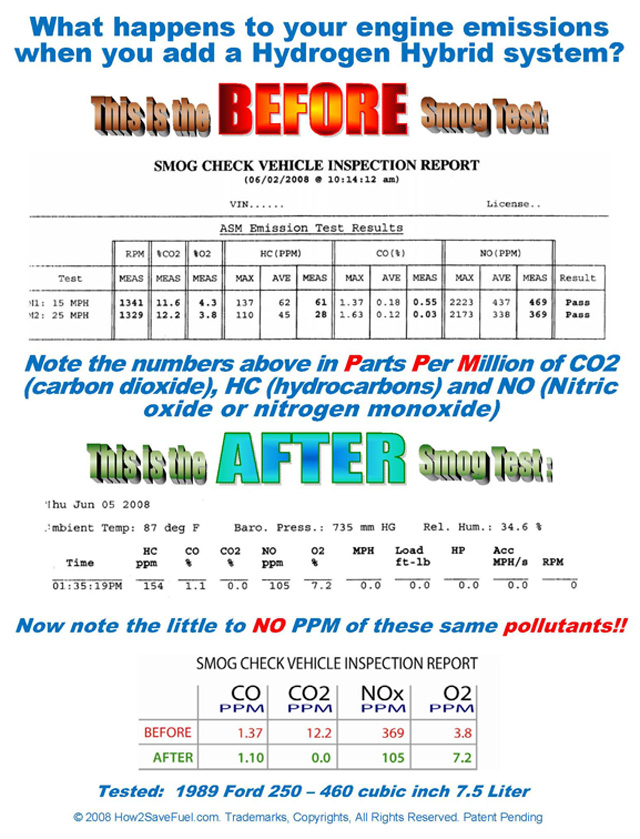The American Hydrogen Association Test Lab tested this technology and proved that: “Emissions test results indicate that a decrease of toxic emissions was realized.” Again, zero emissions were observed on CO (carbon).